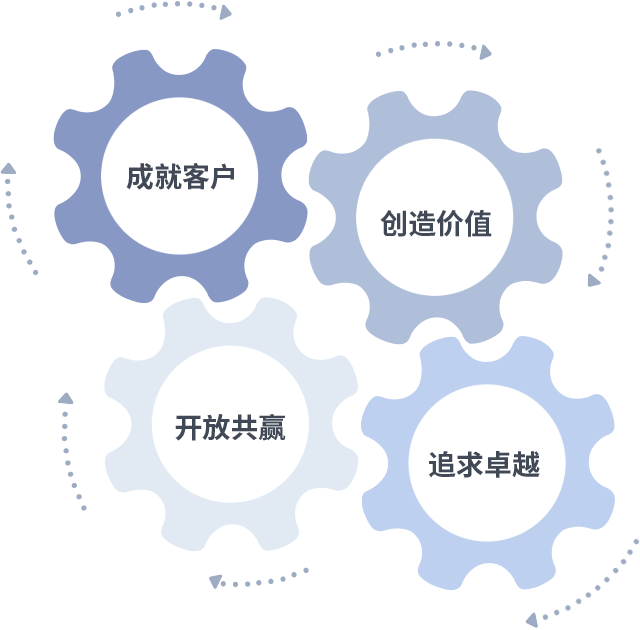成就客户是一切决策的出发点,创造价值是衡量所有工作的标准,追求卓越是开元ky888做事做人的态度,开放共赢是开元ky888的格局也是最终的结果。价值观的齿轮环环相扣,推动着组织里的每个人不断向前。